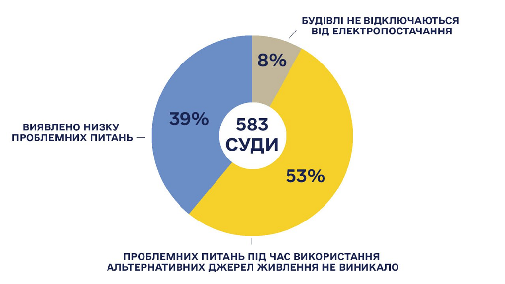 307 судів (53%) повідомили, що проблемних питань під час використання альтернативних джерел живлення не виникало;